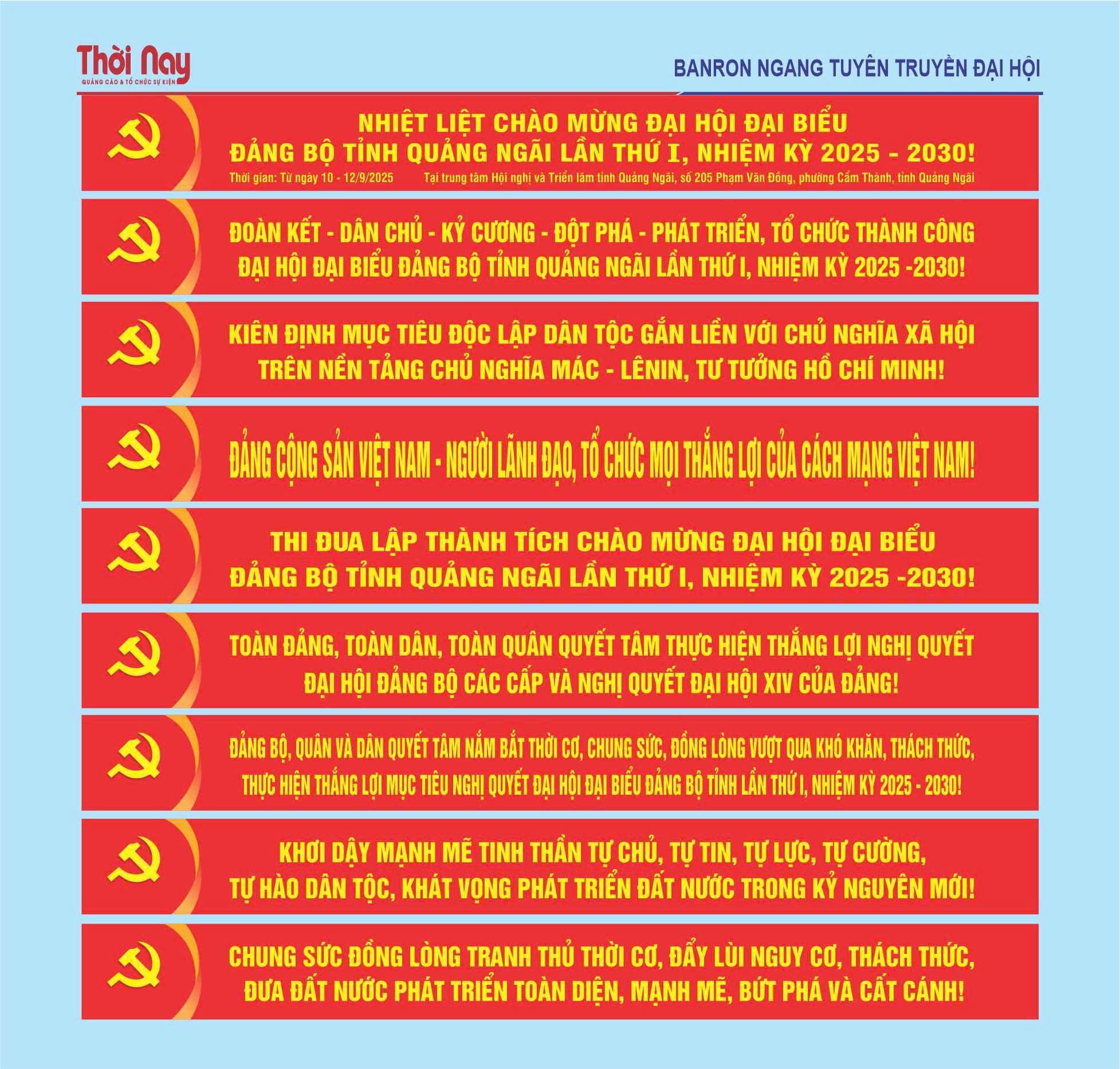 ĐẠI HỘI ĐẠI BIỂU ĐẢNG BỘ TỈNH QUẢNG NGÃI LẦN THỨ INHIỆM KỲ 2025-2030