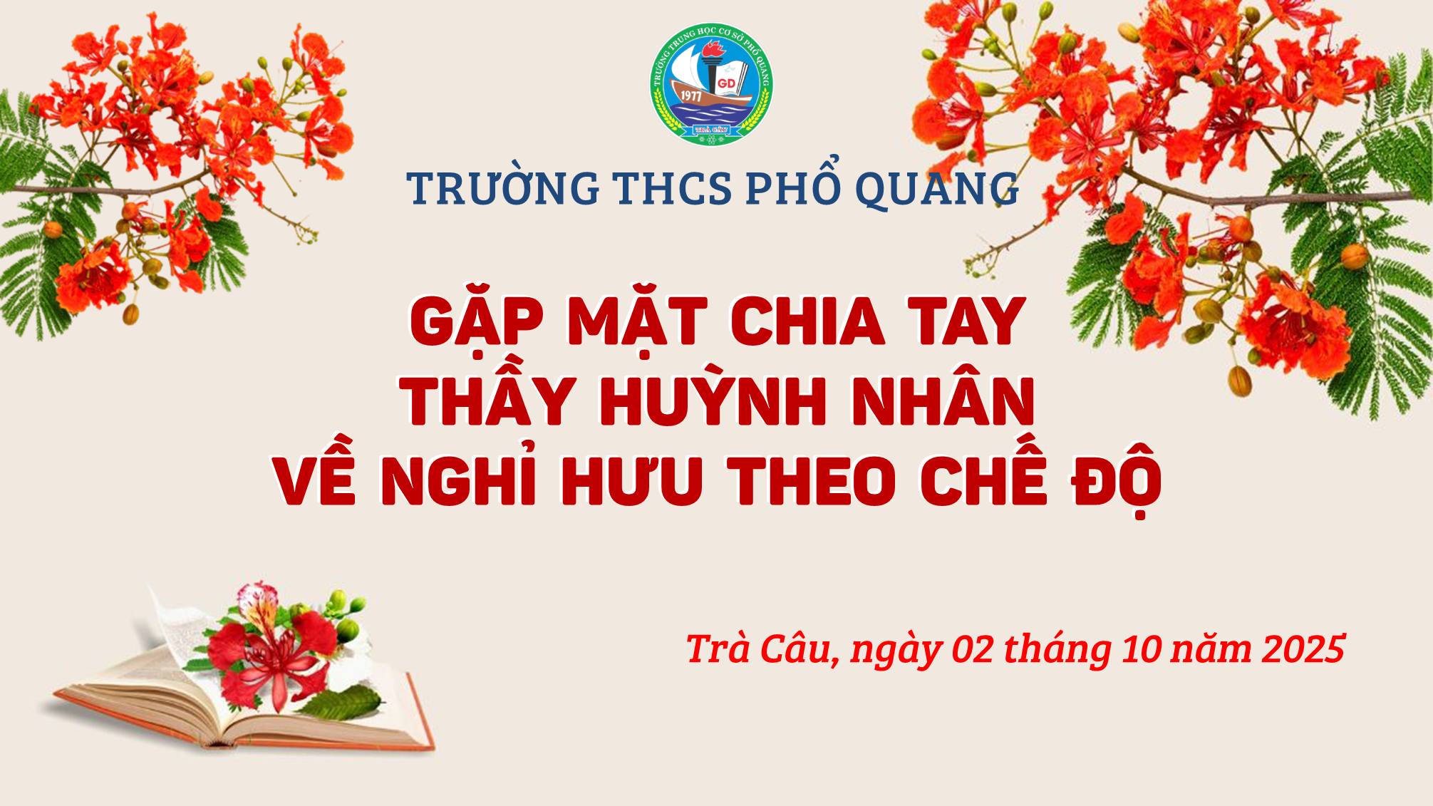 Ngày 02/10/2025, Trường THCS Phổ Quang đã long trọng tổ chức buổi gặp mặt chia tay thầy Huỳnh Nhân – giáo viên môn Tiếng Anh, sau hơn 30 năm gắn bó, cống hiến trọn vẹn cho sự nghiệp trồng người.